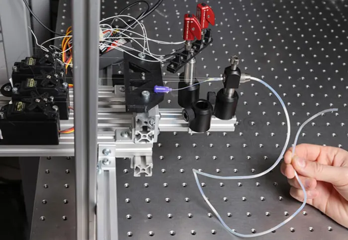 To generate long fibers featuring multiple channels along their entire length, the researchers had to fine-tune the drawing process parameters. By getting the material properties, the drawing speed, and the temperature just right, the team could reliably produce the continuous channels, carefully arranged within the fibers at a micrometer scale, needed to give the fiber its robotic capabilities.