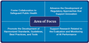 - Promote the development of educational initiatives to support regulatory bodies, health care professionals, patients, researchers, and industry as they navigate the safe and responsible use of AI in medical product development and in medical products.