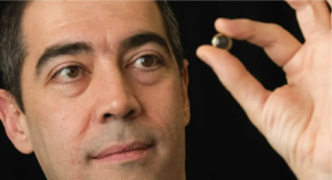 Hamdi Torun holds the contact lens. (Credit: Northumbria University)