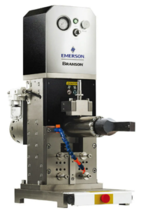 Fig. 1 – Ultrasonic welder, showing tooling (horn and anvil). (Credit: Emerson)