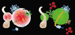 Nanogel: Illustration of selective drug treatment in the central nervous system. (Credit: Politecnico di Milano/Istituto Mario Negri)